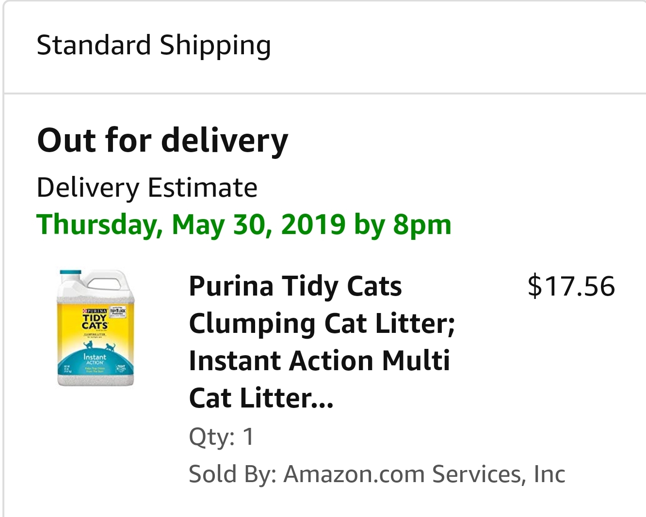 So, it struck me as I opened emails this morning that this will be the last Amazon delivery I will receive here before I leave. And it is Tidy Cat.